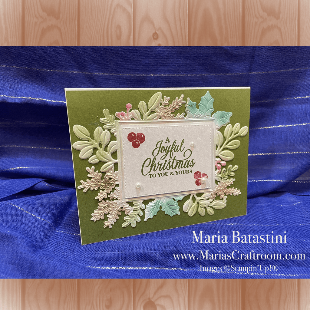 Hi this is Maria. Today is part three of the Merriest Moments Series. We’re using the Merriest Frames Hybrid Embossing Folder Set and the Merriest Moments Stamp Set. They all go together perfectly to make spectacular cards.