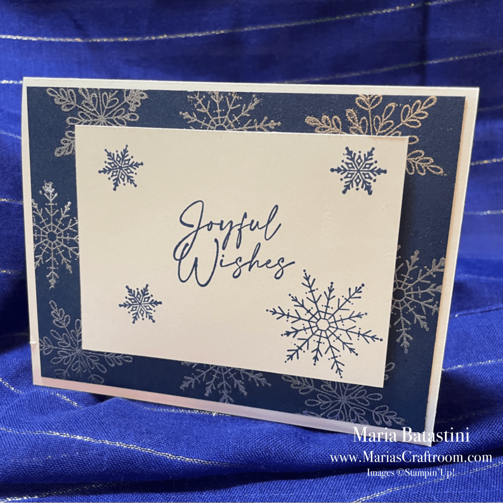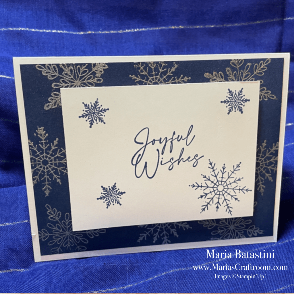 Hi this is Maria. Today we’re making a beautiful Christmas Card using the Joyful Flurry cling stamp set (1598014).