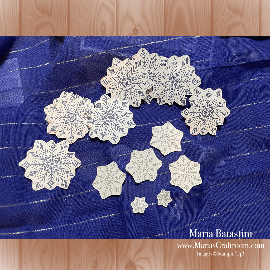 We’re just making the snowflake cutouts today. Click here to see last week’s video and check the blog for instructions on how to make this card.