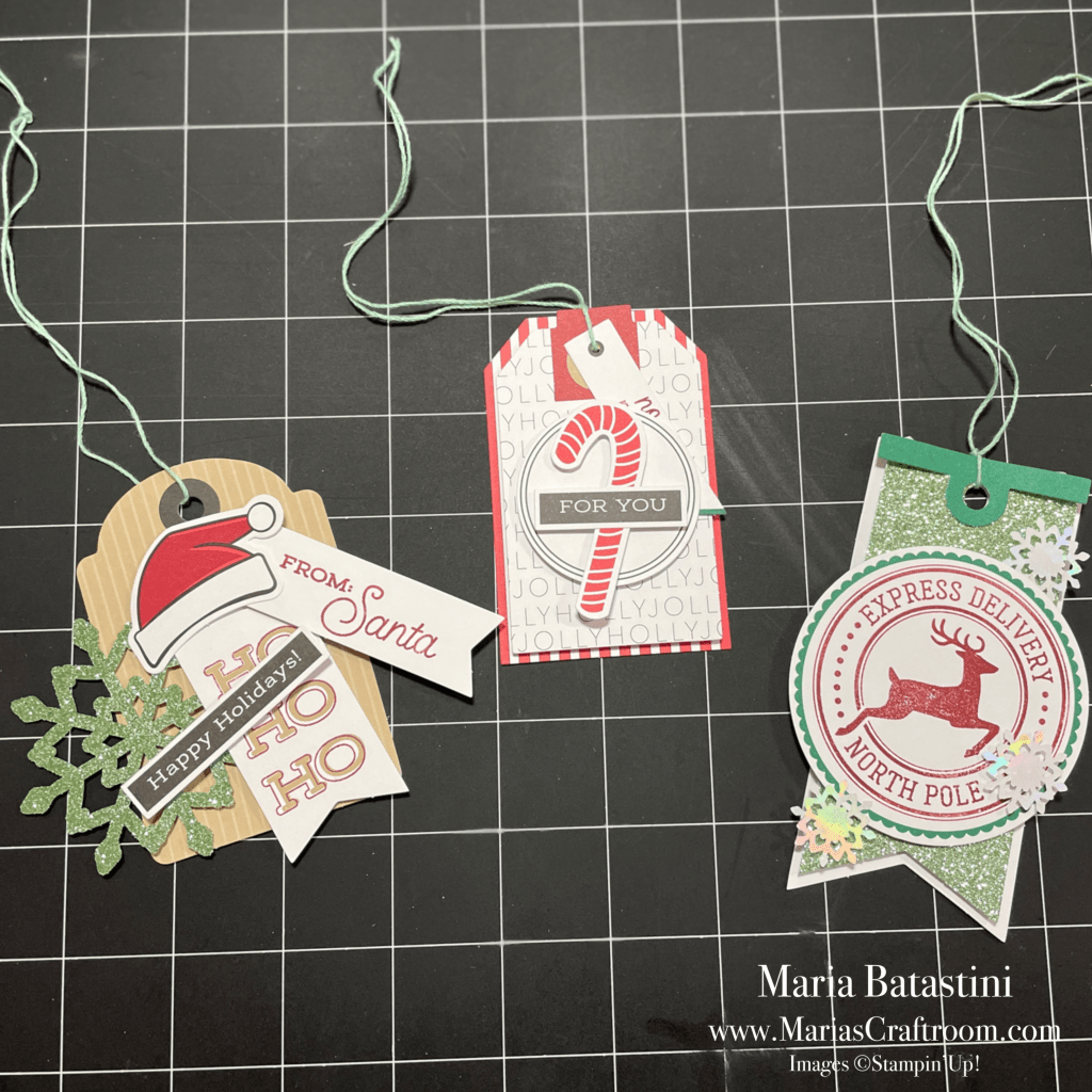 Open the box and discover the new project! Find the instruction sheet and separate the pieces needed for each project. This box contains supplies to make three tags (4 of each). Stamp the images as per the instructions, or be creative and go your own way. It’s is up to you. Use the included dimensionals to put the pieces together onto the tags. Finish by attaching the included string.