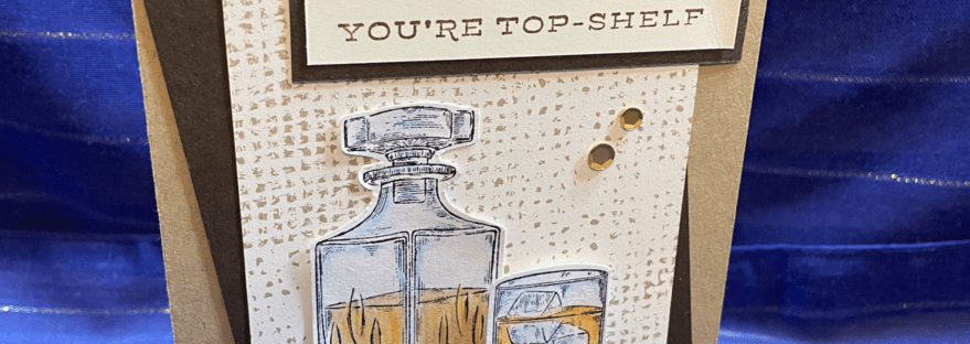 Today we’re making a a masculine card using the Whiskey Business Stamp Set and Water Color Pencils. I used a blender pen to create a beautiful color blend.