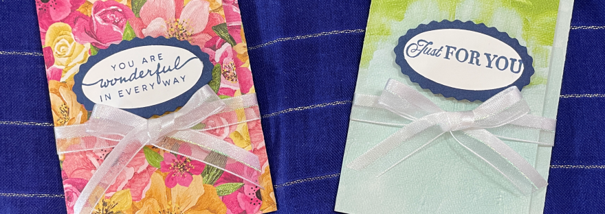 Today we’re making a trifold gift card holder for my son, but I have a dilemma. All I have is flowery paper. Oh no! No worries, we will cover the flowers! I'll show you how to make a feminine and a masculine gift card holder.