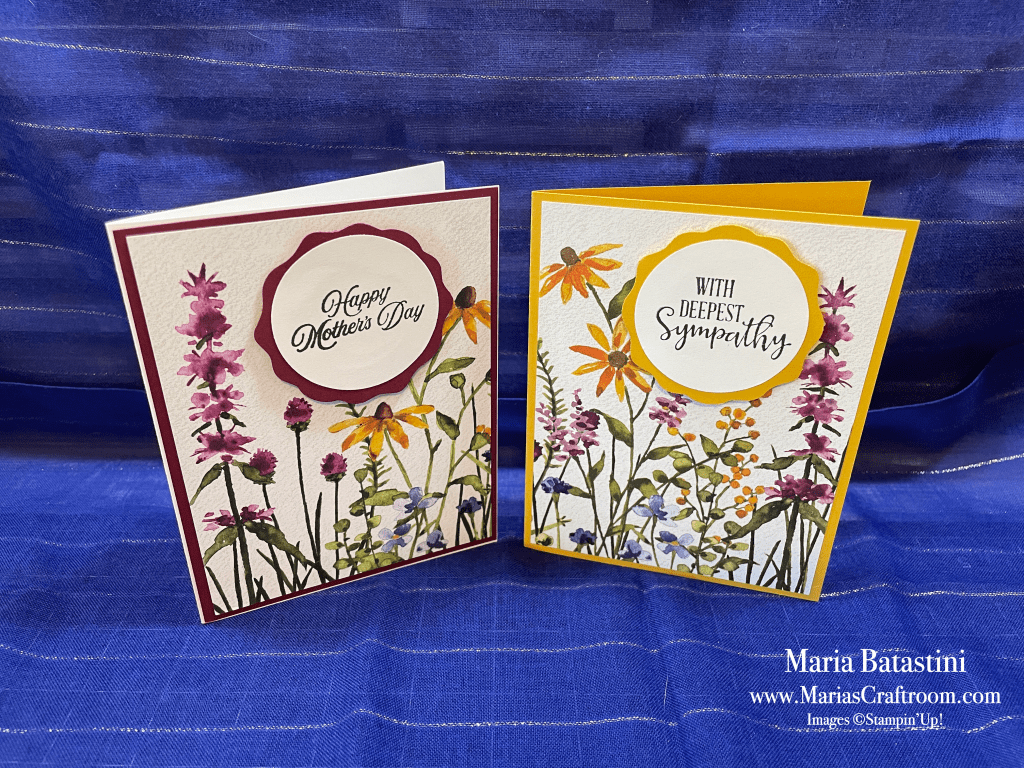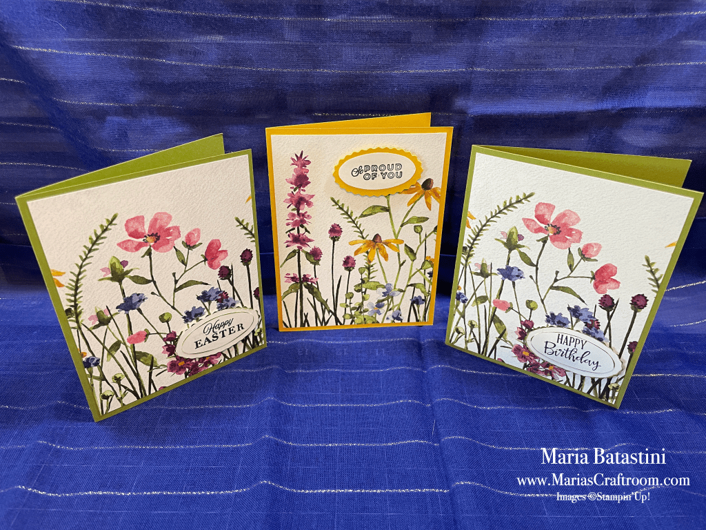 Hi this is Maria. Today we’re making a 5 simple cards that you can make quickly. All you need is beautiful paper, and a few sentiments. I use punches, but you can get by without them.