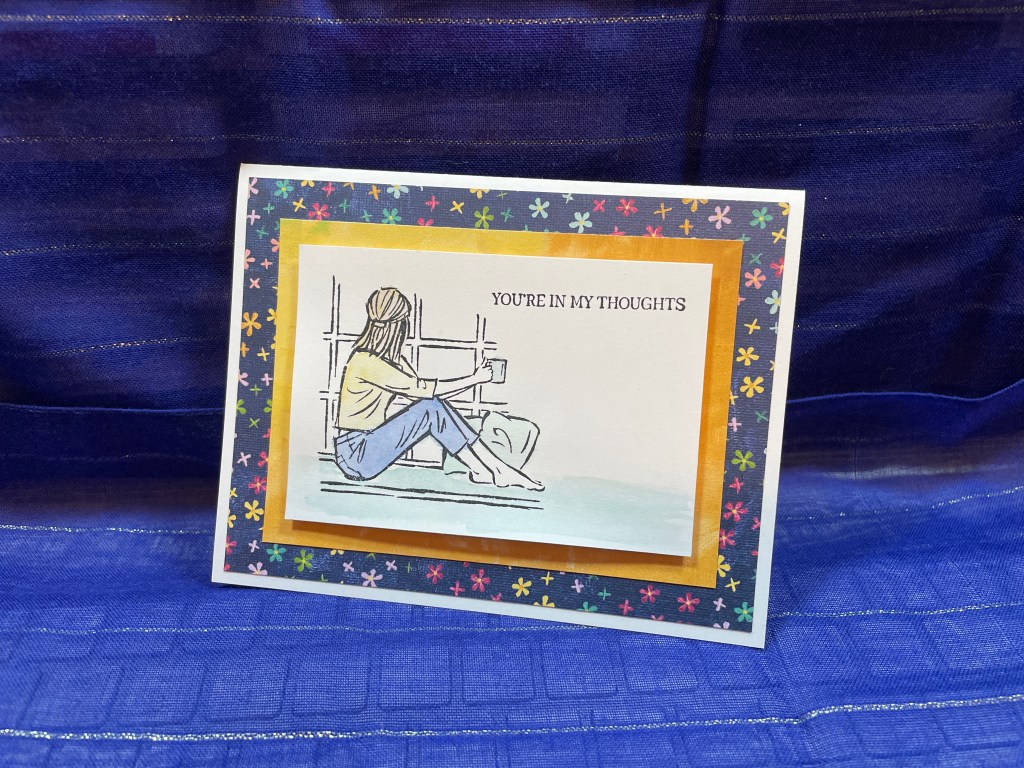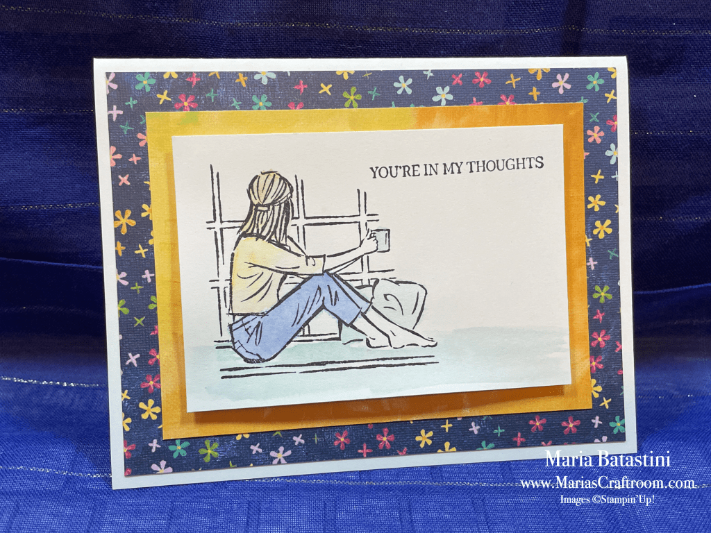 Hi this is Maria. Today we’re making an easy watercolor using In the Moment stamp set and Hues of Happiness Designer Series Paper. I love using pretty paper. It makes gives such a stunning result.