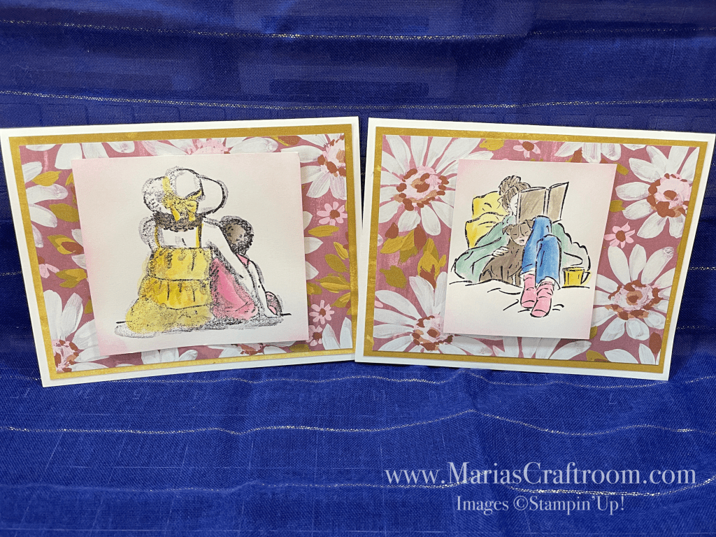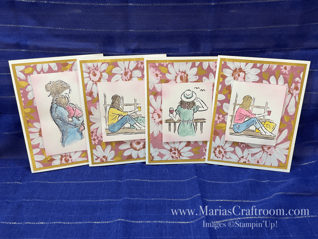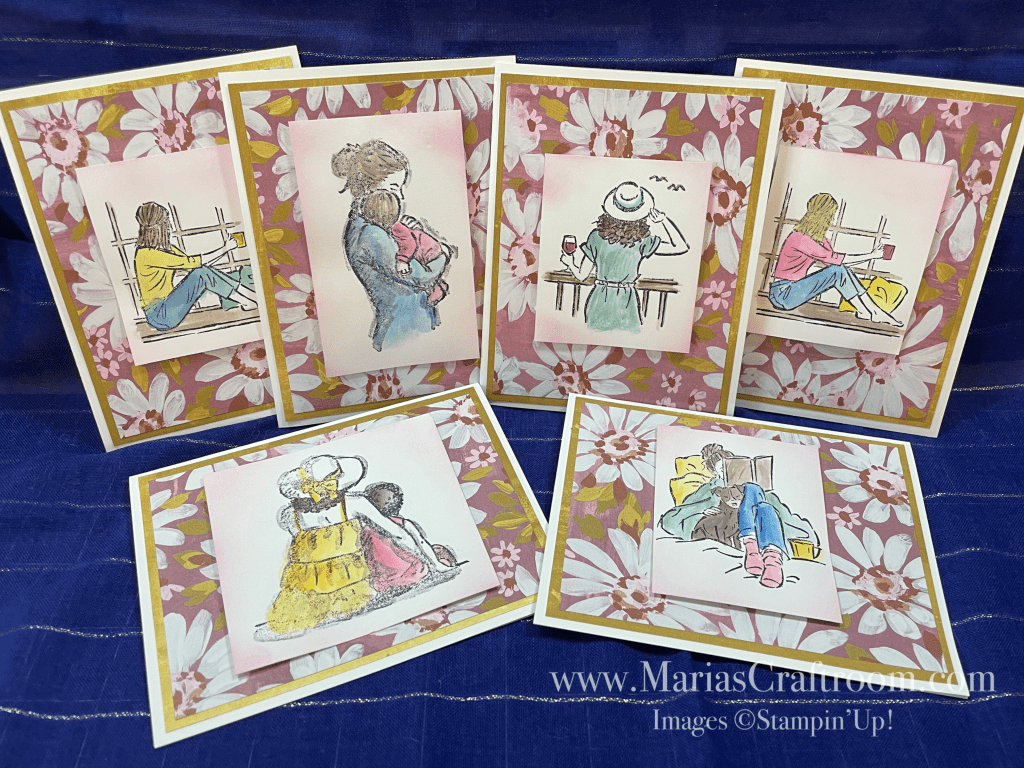 Hi this is Maria. Today we’re making Mother’s Day Cards! I’ll show you my assembly line process so to make several similar cards all together. We’re using some New Designer Series Paper called Fresh as a Daisy as well as Places in the Heart and In the Moment Stamp Sets. These came forward from the old catalog.