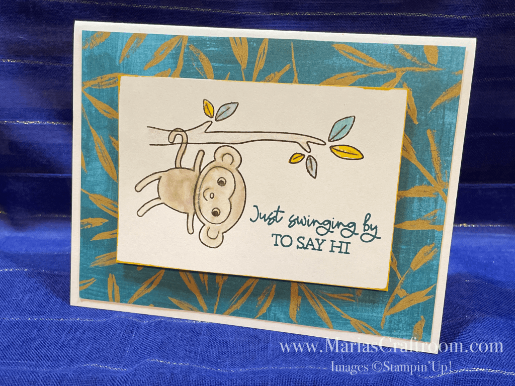 Hi this is Maria. Today we’re making an easy card using the Little Monkey Stamp Set and Fresh as a Daisy Designer Series Paper. This paper is so lovely, it almost doesn’t need any stamps! We will also be using the punch that goes with this bundle.