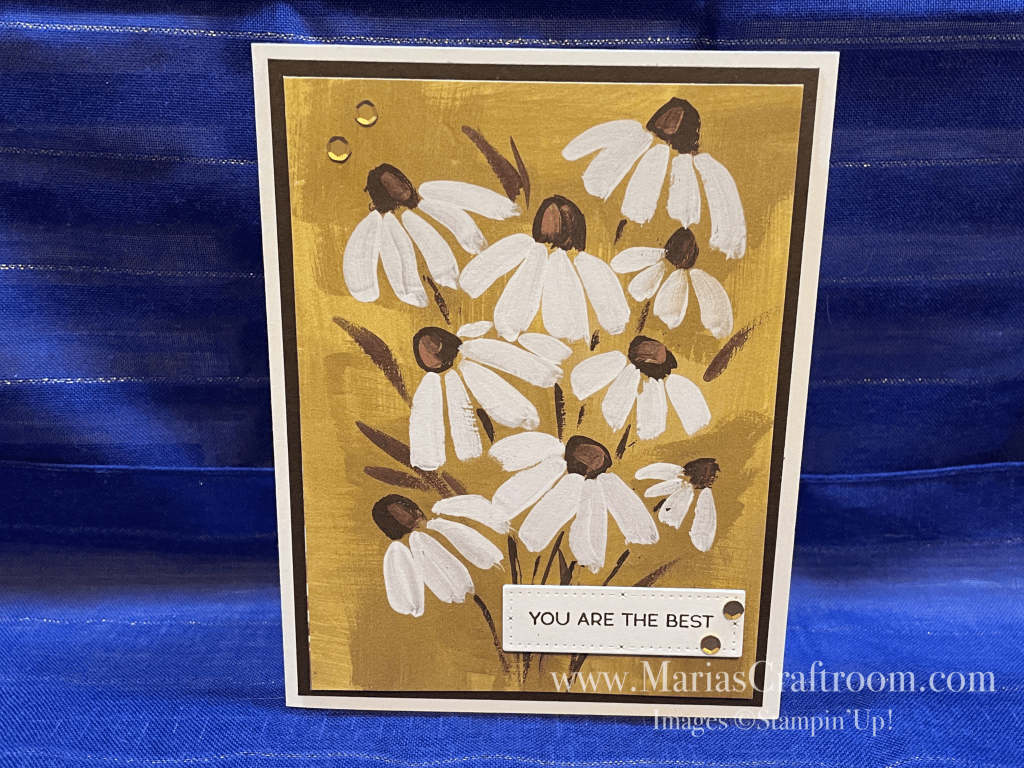 Hi this is Maria. Today we’re making an easy card using a beautiful ready made background from the Fresh as a Daisy Designer Series Paper. It’s so quick to make a card out of this paper! It’s almost an instant card.