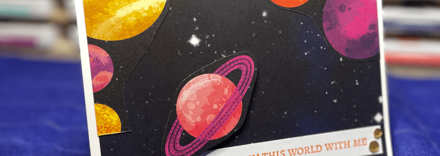 Today we’re making a fun card using Stargazing Designer Series Paper and Scenic Wonders Stamp Set. You wouldn’t immediately think to use this stamp set with this paper, but I like to find great sentiments to go with great paper.