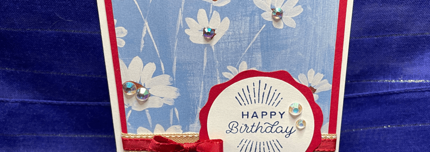 Today we’re making a beautiful Birthday card using Circle Sayings stamp set, along with Fresh as a Daisy Designer Series Paper, and a couple of paper punches. We’re using a Red, White & Blue theme to make these fun and easy cards.