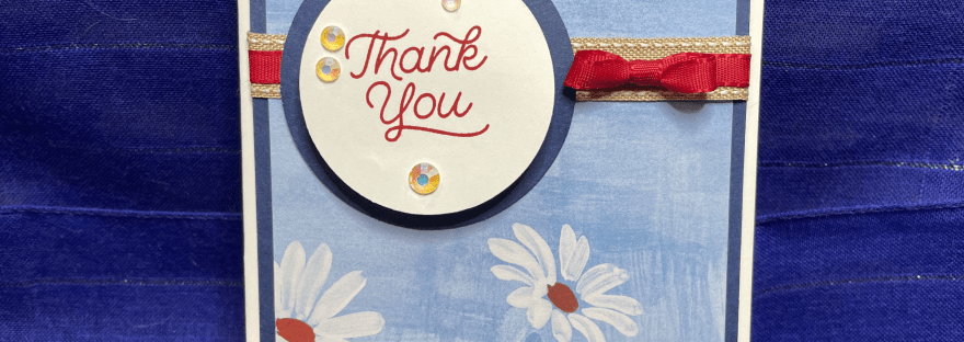 Today we’re making a Red, White & Blue Thank You card. These are so easy to make with the stunning Fresh as a Daisy Designer Series Paper. I love the colors in this paper set. I find it so enjoyable to find what colors go together.