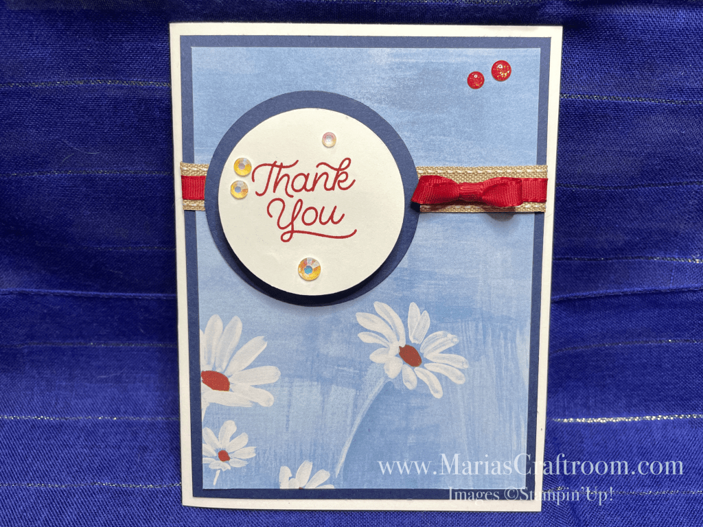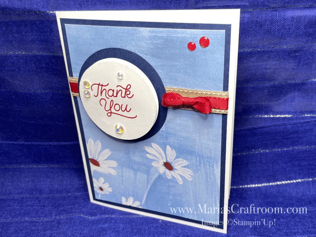 Hi this is Maria. Today we’re making a Red, White & Blue Thank You card. These are so easy to make with the stunning Fresh as a Daisy Designer Series Paper. I love the colors in this paper set. I find it so enjoyable to find what colors go together.