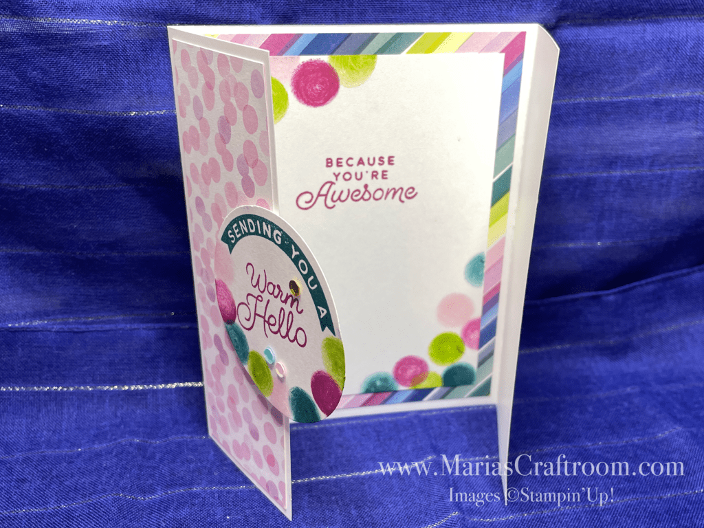 Hi this is Maria. Today we’re making an easy Gate Fold Card using Circle Sayings Stamp Set and Bright and Beautiful Designer Series Paper. This is very easy and looks so fancy!