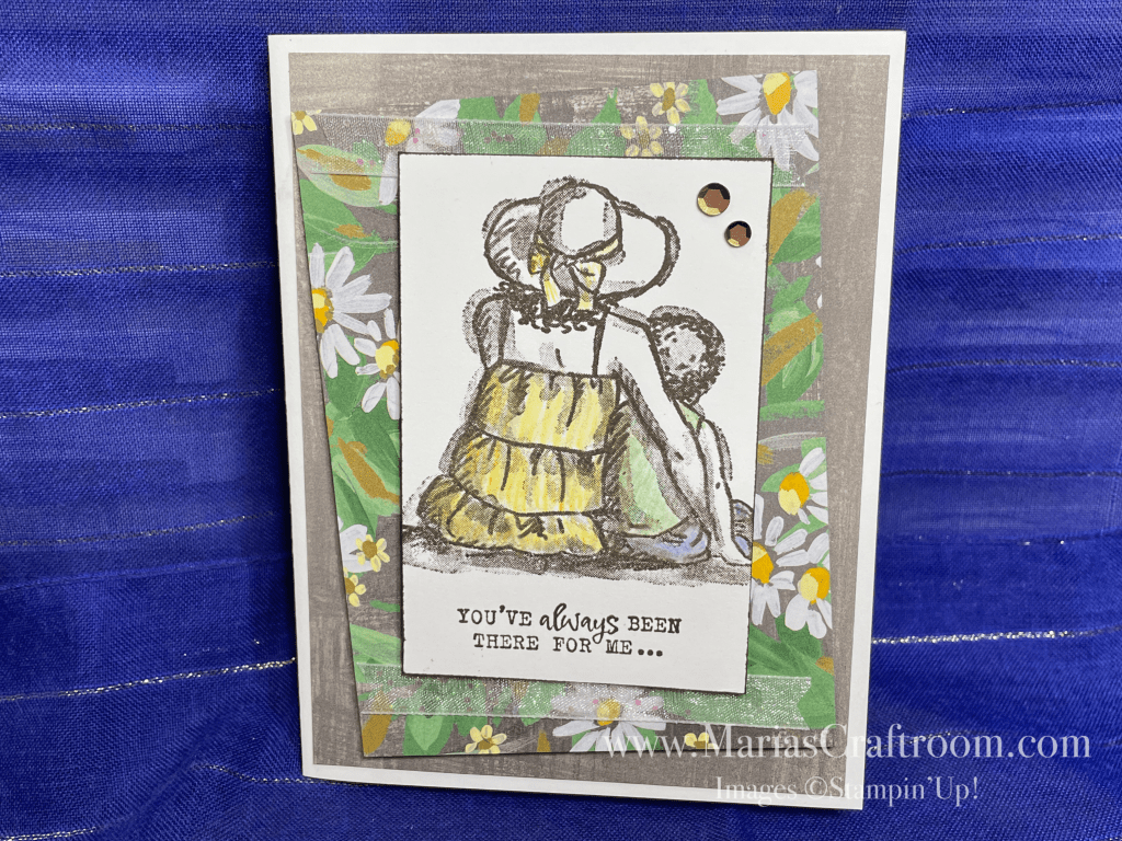 Hi this is Maria. Today we’re making a beautiful card using Fresh as a Daisy Designer series Paper. We’ll also be mixing two stamp sets: Places in the Heart and Beside Me. I love to mix and match stamp sets to fit the occasion. Do you do that?