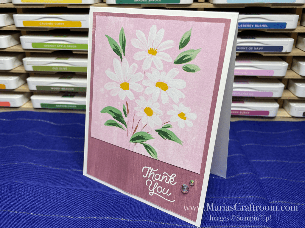 Hi this is Maria. Today we’re making a beautiful Thank You card using Embossing Powder. It’s such an easy way to make any card look fancy, and so easy to do.