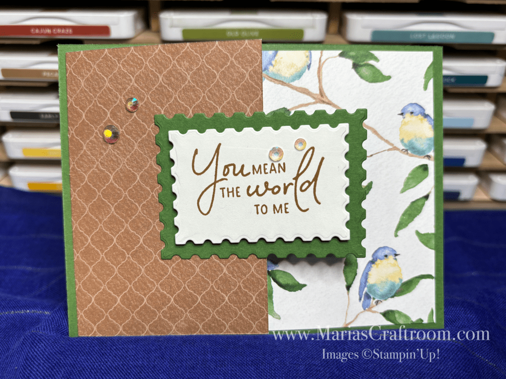 Hi this is Maria. Today we’re making a fun fold using some fun bird paper from the Flight & Airy Designer Series Paper I got from the Sale a Bration promotion. It was free with my $50 purchase. Don’t you love free stuff? I also love that the back of these DSP papers is just as beautiful as the front. Today’s card will let you see both sides.